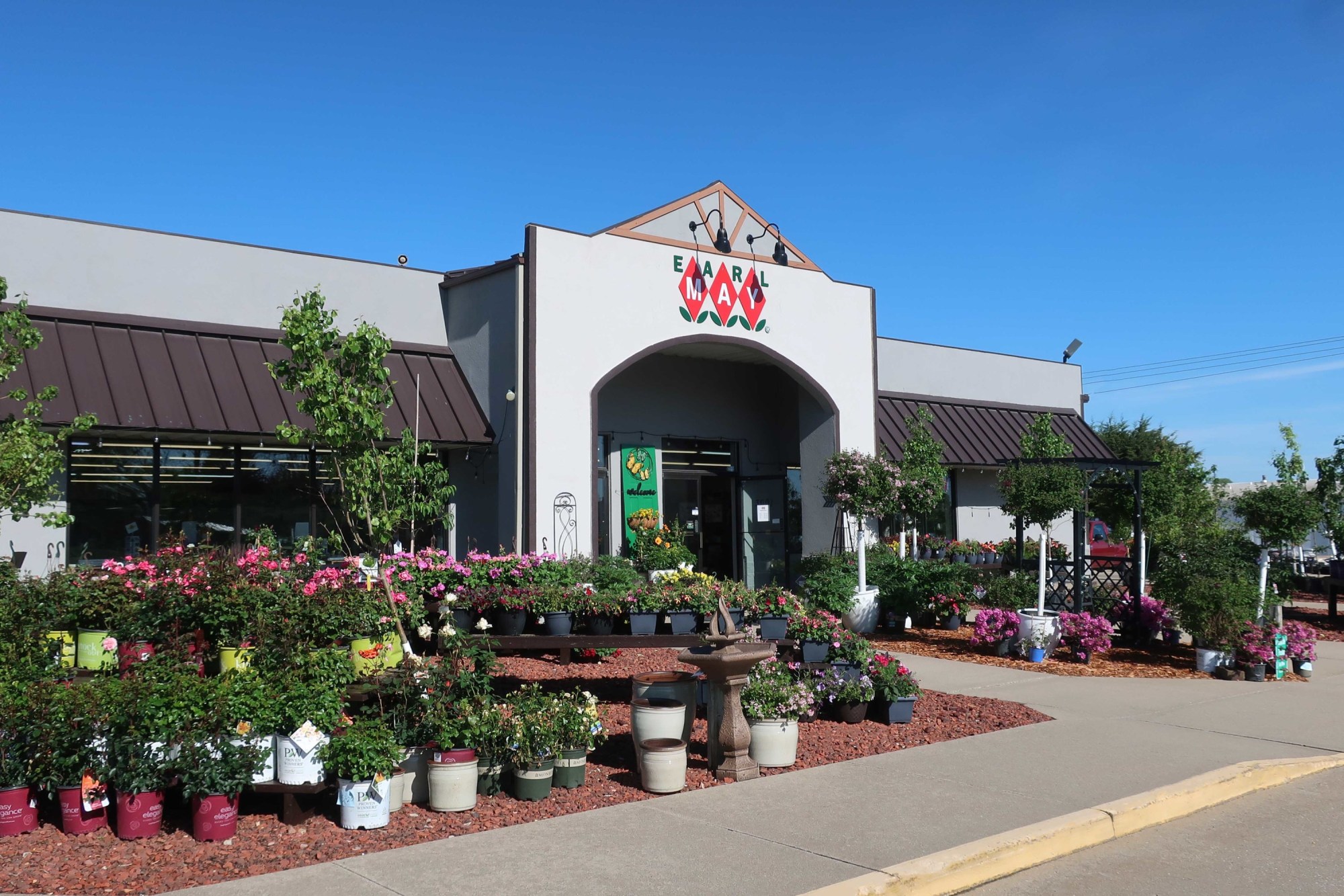 Earl May Garden Center was founded in Iowa in 1919 and has been family owned and operated for over 100 years. Their 28 locations all offer a variety of lawn and garden supplies, plus birding items, houseplants, garden art and more. Services offered include planting, custom container design, and weed and pest ID. Stop in and visit with their team. They are open year-round and ready to help with all your lawn and garden needs!